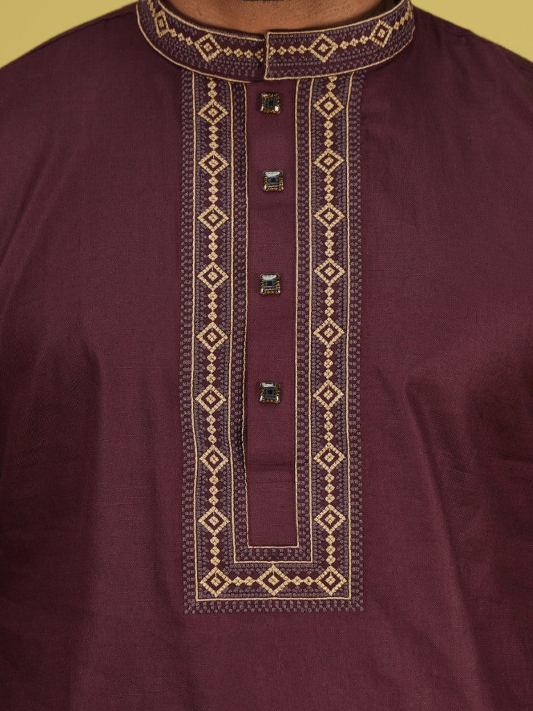 Home Premium Cotton Panjabi Coffee Embroidery HP