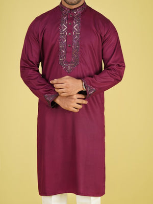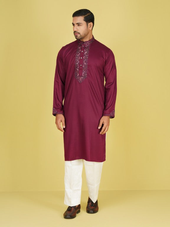 Premium Cotton Panjabi MAroon- HP
